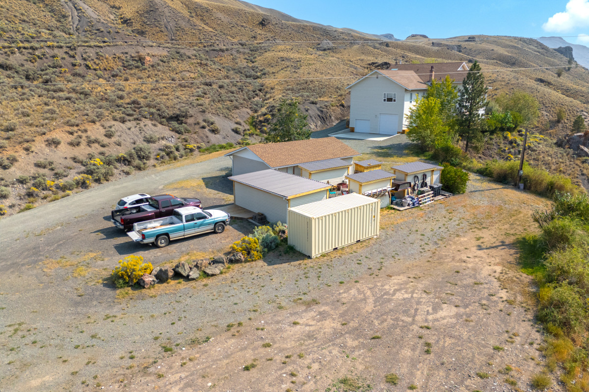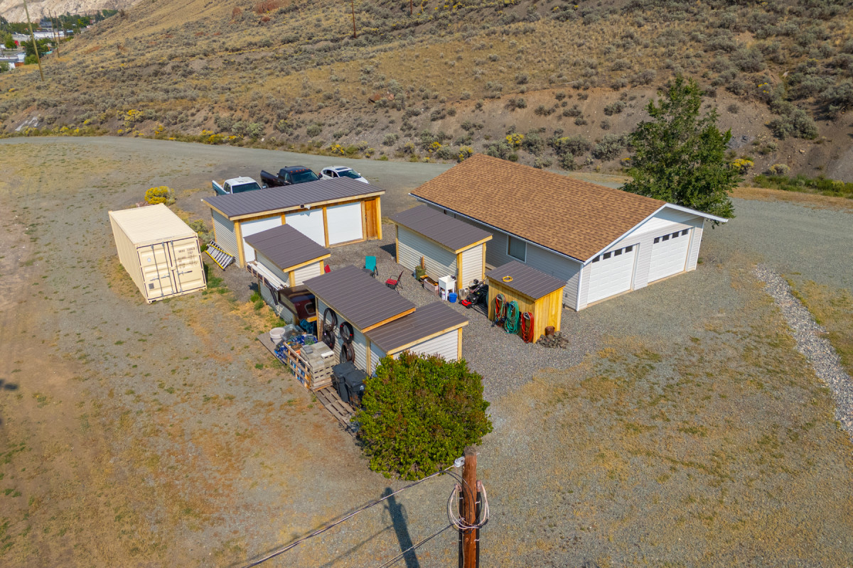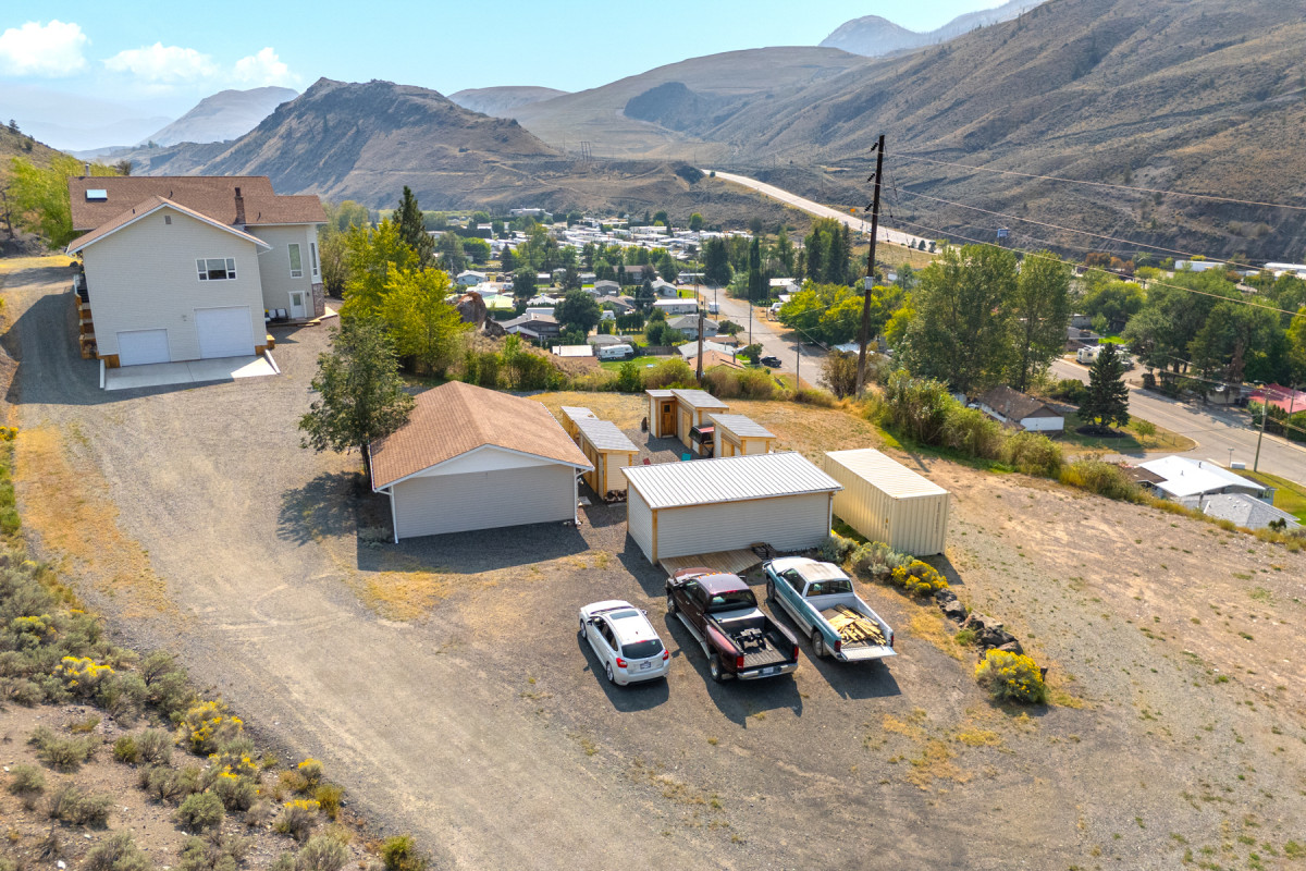 Plenty of space for vehicles, equipment, and hobbies with a 4-car garage with hoist, a detached workshop with its own electrical service, and multiple outbuildings for general and ATV storage. RV hookup with sani dump is already in place.