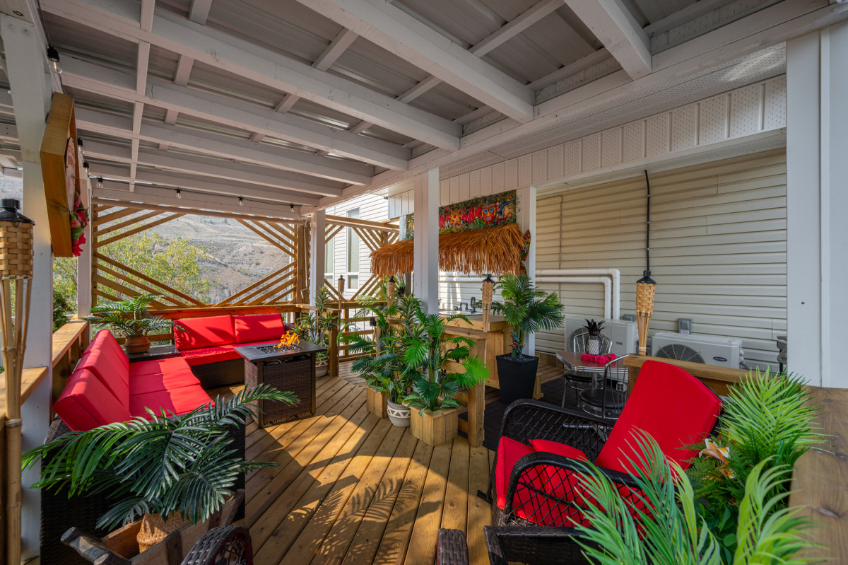 At its center is a thoughtfully designed 6,000+ sq/ft, 5-bedroom, 6-bathroom home ideal for multi-generational living or co-ownership. Wheelchair-accessible and served by an elevator on all three floors, the home features a level-entry in-law suite that could be converted into a separate self-contained unit. The main floor offers an executive chef’s kitchen with industrial gas range, open-concept living spaces, and multiple covered decks—one complete with a tiki bar for entertaining and unwinding. Premium finishes include engineered hardwood, radiant heat, natural gas, 6″ insulation, and a 2017 roof replacement.
