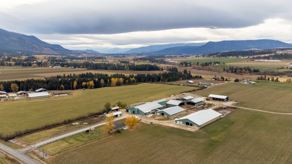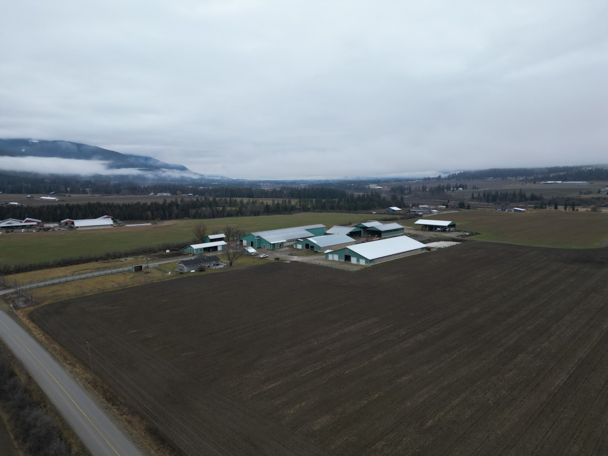 148.057 ACRE DAIRY FARM ON 3 TITLES in the Spallumcheen Valley with frontage on Back Enderby Rd and secondary access from Stepney Rd. Improvements include a well-maintained home (approx. 1,800 sq. ft.) featuring 5 bedrooms, 2.5 bathrooms, updated kitchen, modern finishes, propane heating, electric A/C, Hardie board siding, and unfinished basement. The main dairy barn and milking parlour (approx. 21,840 sq. ft.), built in 2004, features a double-8 herringbone rapid exit parlour and 138 comfort stalls. Additional buildings include a heifer calf barn (approx. 19,760 sq. ft.), close-up/special needs barn with covered breezeway, dry cow barn, heifer hay barn, hay and equipment storage, shop, electrical building, and 6 open storage bunkers. Fixed equipment includes 2 Houle transfer pumps, 5,000-gallon bulk milk tank, alley scrapers, and Dairy Comp & DelPro management systems with milk meters, ID, and activity monitoring. Power security provided by a stationary 100KW diesel generator with automatic transfer switch. Serviced by 2 wells & septic, ample power, and a functional farmyard layout. Water license for irrigation. Quiet location close to Armstrong and Enderby. Cows and quota not included, available at market value.